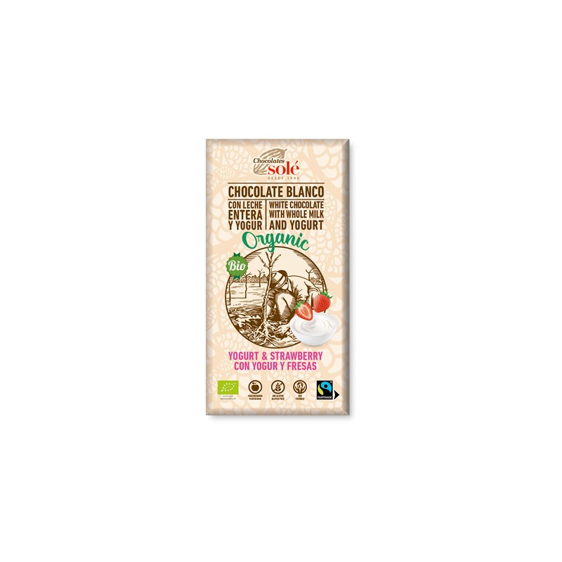Xocolata blanc, Solè ecològic La Xocolata blanc, Solè ecològic te un toc diferent. Ingredients: Sucre de canya, llet amb pols, mantega de cacau, emulgent lectina de girasol i vainilla. Pot contindre traces de fruits secs. Producte sense gluten. Ingredients provinents de l'agricultura ecològica. Conserveu-lo en un lloc fresc i sec.